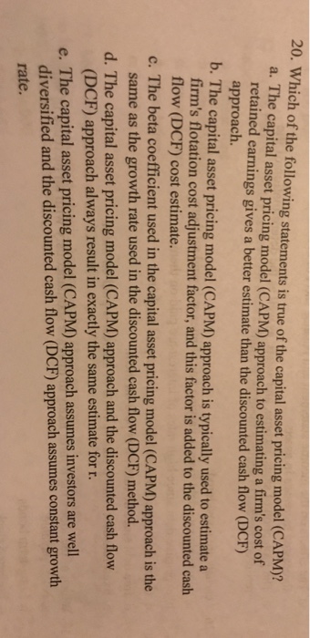The Cost Of Equity Using The Capm Approach The Current Risk Free Rate Of Return Rf Is Homeworklib